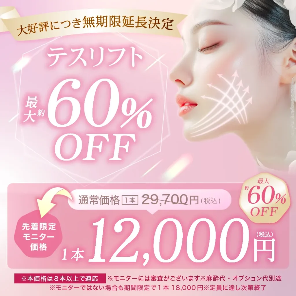 \ 超人気施術のため1名様のみの募集 /今だけ26%OFF フェイスリフトスマス 通常価格 ¥748,000(税込) → 限定モニター価格 ¥547,800(税...